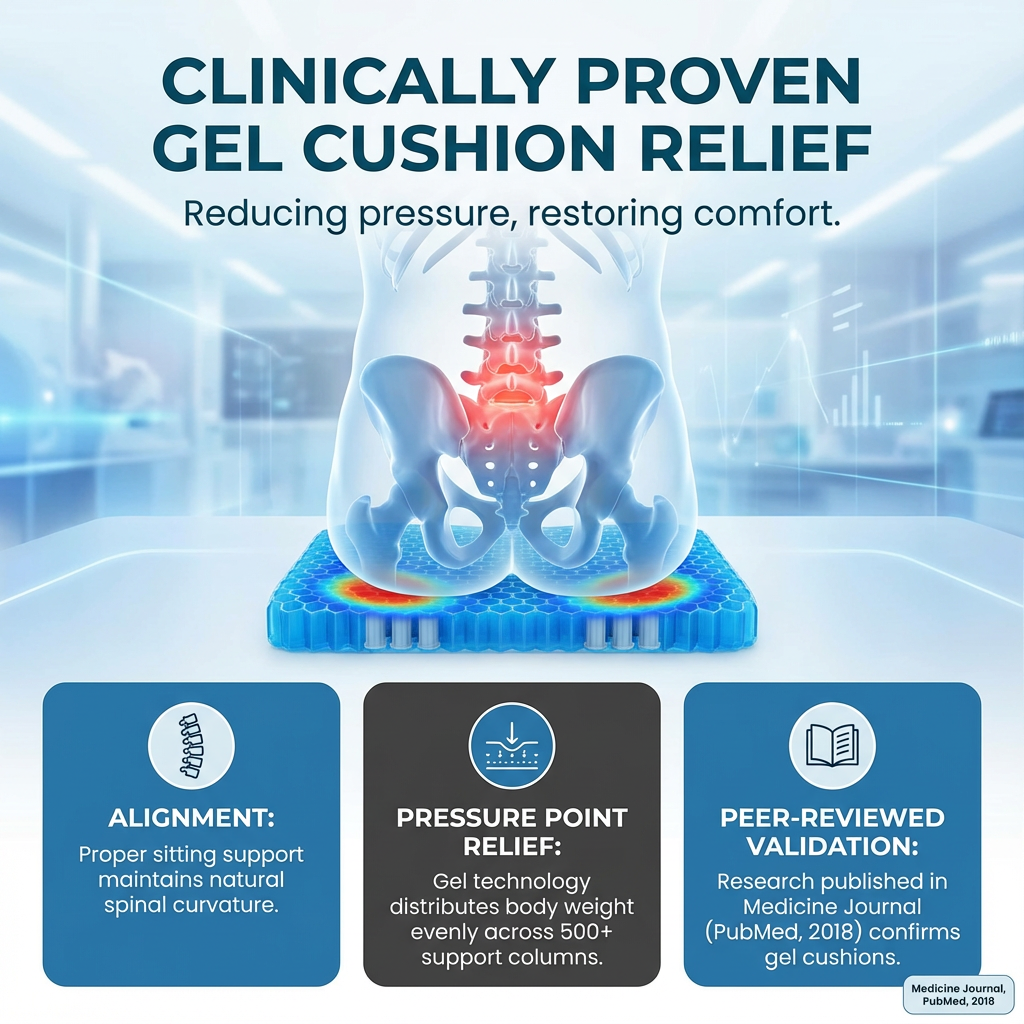 "Proper sitting support is essential for spinal health. Research published in Medicine Journal confirms that gel seat cushions significantly reduce chronic back pain in people who sit for extended periods. I recommend orthopedic gel cushions like this to help my patients improve posture, relieve pressure, and sit comfortably throughout the day."